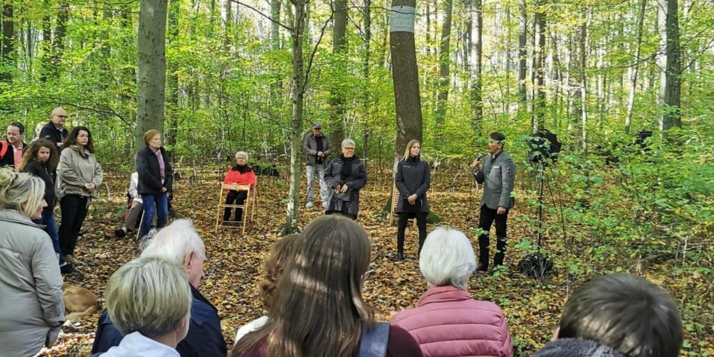 Legen Sie bitte keine Blumen oder Ähnliches im Wald der Ewigkeit ab.