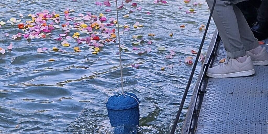Die Urne löst sich rasch im Wasser auf und gibt der Asche die Freiheit.